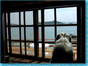 | 座間味島にある犬OK!のペンション。マリンサービス、というのがダイビングサービス(ショップ)の名前で、その宿泊施設がSOUTHWIND(サウスウィンド)。連絡先は同じ。今のところ、雑誌や本で「犬OKの宿」とは紹介されていない、秘密の花園といったトコロでしょうか?犬の料金なども無し。そのかわり、犬のための特別サービスも無し。ゴハンは自前で用意して、犬の健康管理も飼い主さんがしっかりと責任を持って。 目の前が海、というのがまず無条件にすばらしい。オーナーが筋金入りのダイバーなので、ダイビングをするヒトは存分に楽しめると思います。僕はすでにペーパーダイバーなので今回はパス。でも次回はぜひ、潜ってみたいです。 |