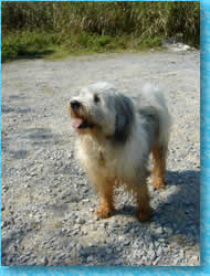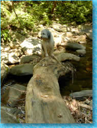 | マイナスイオンが気持ちよくても身動きできないのはいかがなモノか?少し下流に後戻り、遊べそうな河原でもう一服。上手い具合に川の上、太いツルがたれて天然ブランコ。気持ちいいな、コレ。ぷらぷら揺すられた後は、丸太の一本橋をへっぴり腰ながら制覇しちゃって、もくれんこの旅で鍛えられてます。 駐車場まで無事に戻って、出入り口(ゲートがある)を通ったら管理人らしきおじさんが怪訝なカオ。犬はダメなんて書いてないよなぁ?書いてあっても今さら遅いし。よくよく周囲を眺めたら、なんと入場料オトナ200円と書いてある。誰もいなかったし気にもとめない金払わない、でテクテク入っちゃったな。犬連れは目立つから、こんな客いたかな金もらってねえゾ、なんてチェック入れられたのかも。何も言われなかったけどね。すいません、次に来るときはちゃんと払います。 |