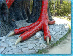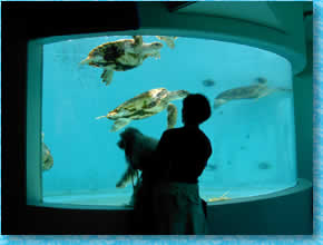 広い広い。そして無料。那覇からはそこそこの距離で、たどり着くまでちょっと大変。たどり着いてからもあまりの広さに、大変。 イルカの芸がタダで見られたり沖縄の古い民家が移築してあったり、水族館やら植物園やら郷土資料館やら施設は充実。一日いても飽きないスね。多分。 園内あまり犬が来ないのか、犬についての記述無し。鎖につなげとか。いい場所だ。書いてないからって、野放しはしませんけど。 |