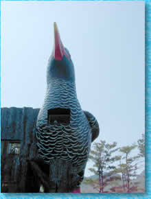 観光案内の看板によれば、岬から少し離れた山中に展望台があるらしい。しかもヤンバルクイナの形をしている展望台らしい。それは行かねば。 向かう途中の車から「あ、あれは!」。山の中腹森の中、にょっきり突き出たヤンバルクイナ発見。でかっ。でかいぞアレは。足下にたどり着いたらあまりにでかすぎて、全体が撮れないほど。好きだなこういう、紙一重なモノ。山の中なので涼むのに良い場所。ちなみに何を展望できるかというと、大海原に突き出た辺戸岬。横から眺められます。 犬連れでやんばるに来たなら、ココは是非とも押さえていただきたいポイントですな。このヤンバルクイナ、実物大というウワサもあるけどホント? |