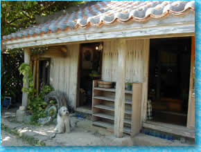 ガイドブックをチェックして、昼ご飯の場所を物色。首里城からそれほど遠くないところの沖縄ソバ屋が外に席アリ。道に迷いながら(ちょっとわかりずらい場所にある)たどり着いて訪ねると、外なら問題なしで犬OK。古い沖縄の民家を使っていて雰囲気も良いし、ソバも美味。それ以上に冷やしぜんざいが大当たりで、嬉しかったな。 |